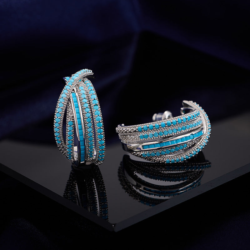 Colorful Zircon Small Design Sense Geometric Line Cross C-circle Earrings